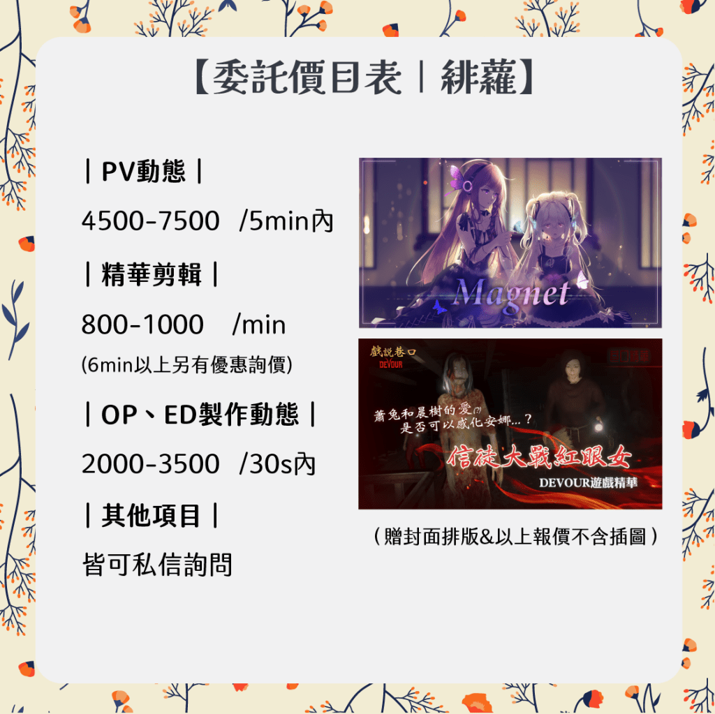 另外 Clibo 站上繪圖創作者眾多,因此關於曲繪、封面圖、貼圖等繪製項目會盡量收錄有明確提到「Vtuber」、「Twitch」等關鍵字的委託,如果對以上項目想再找看看更多創作者的話,可以直接到站上的 繪圖委託 列表看看喔!